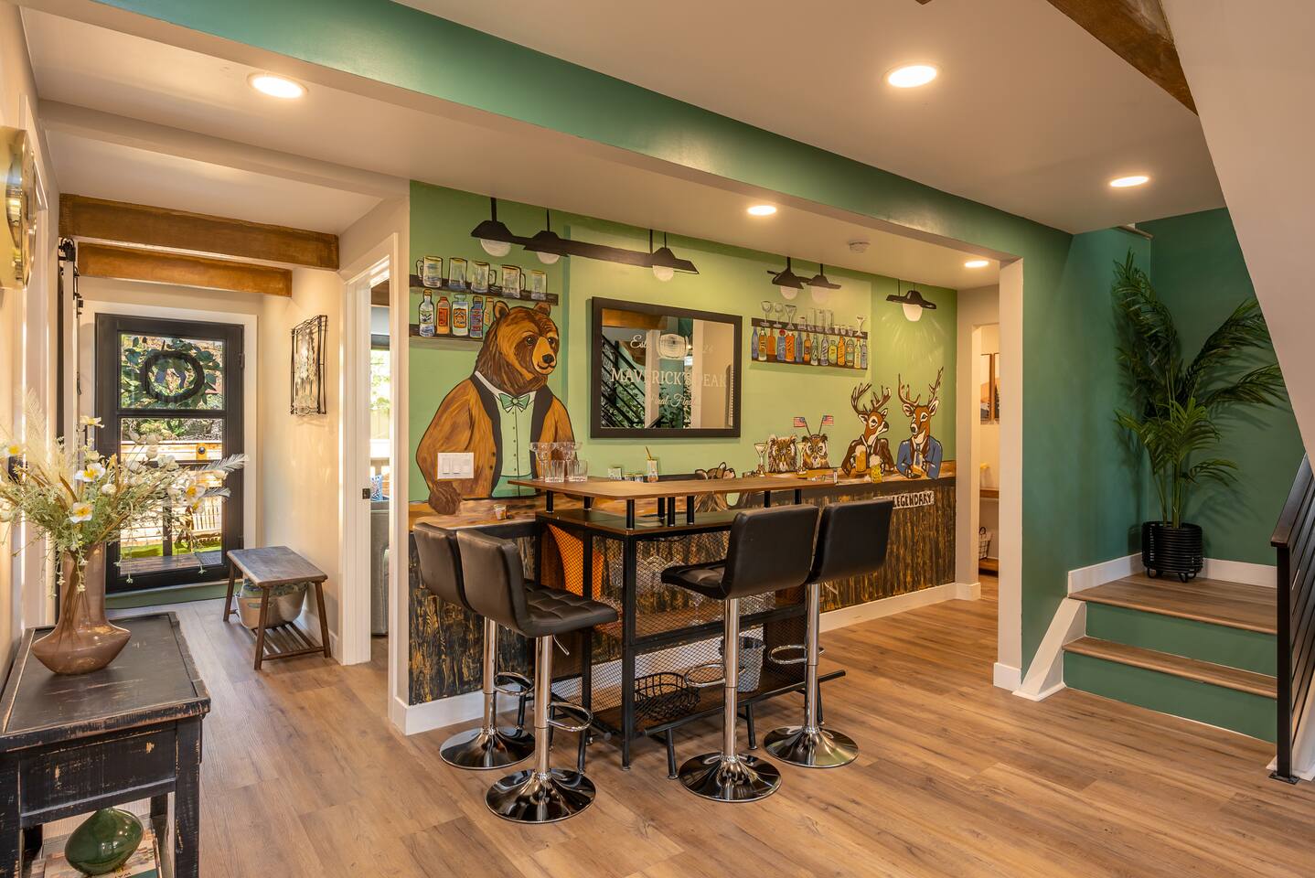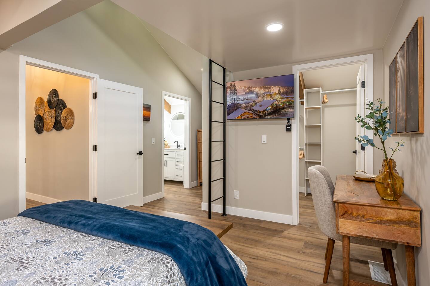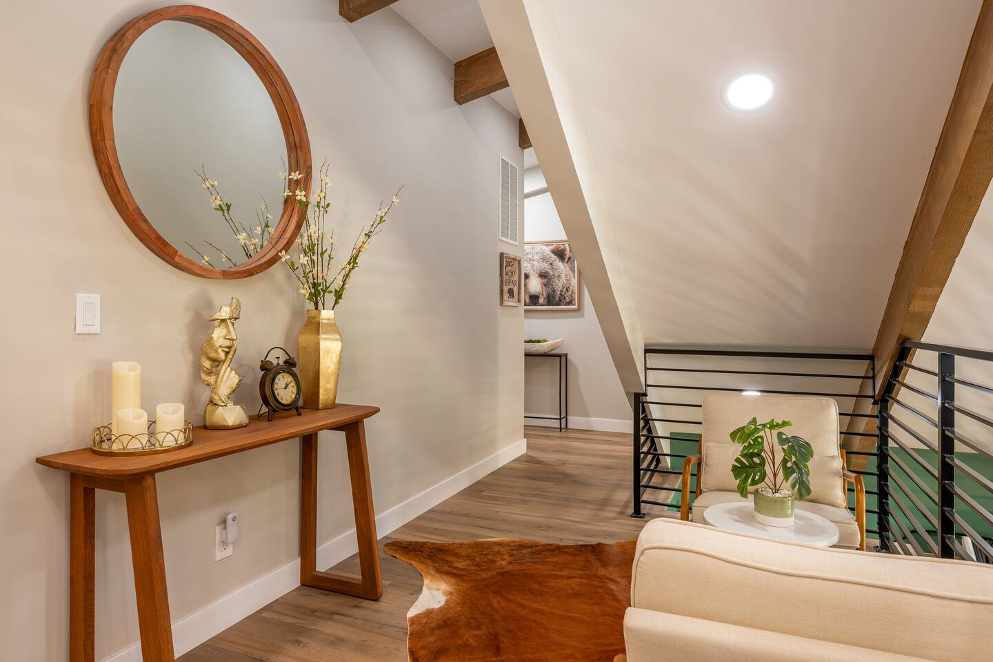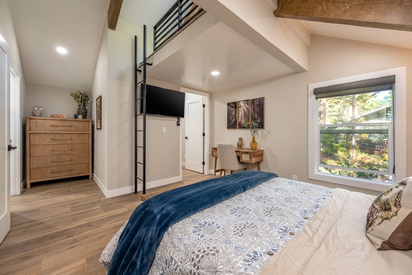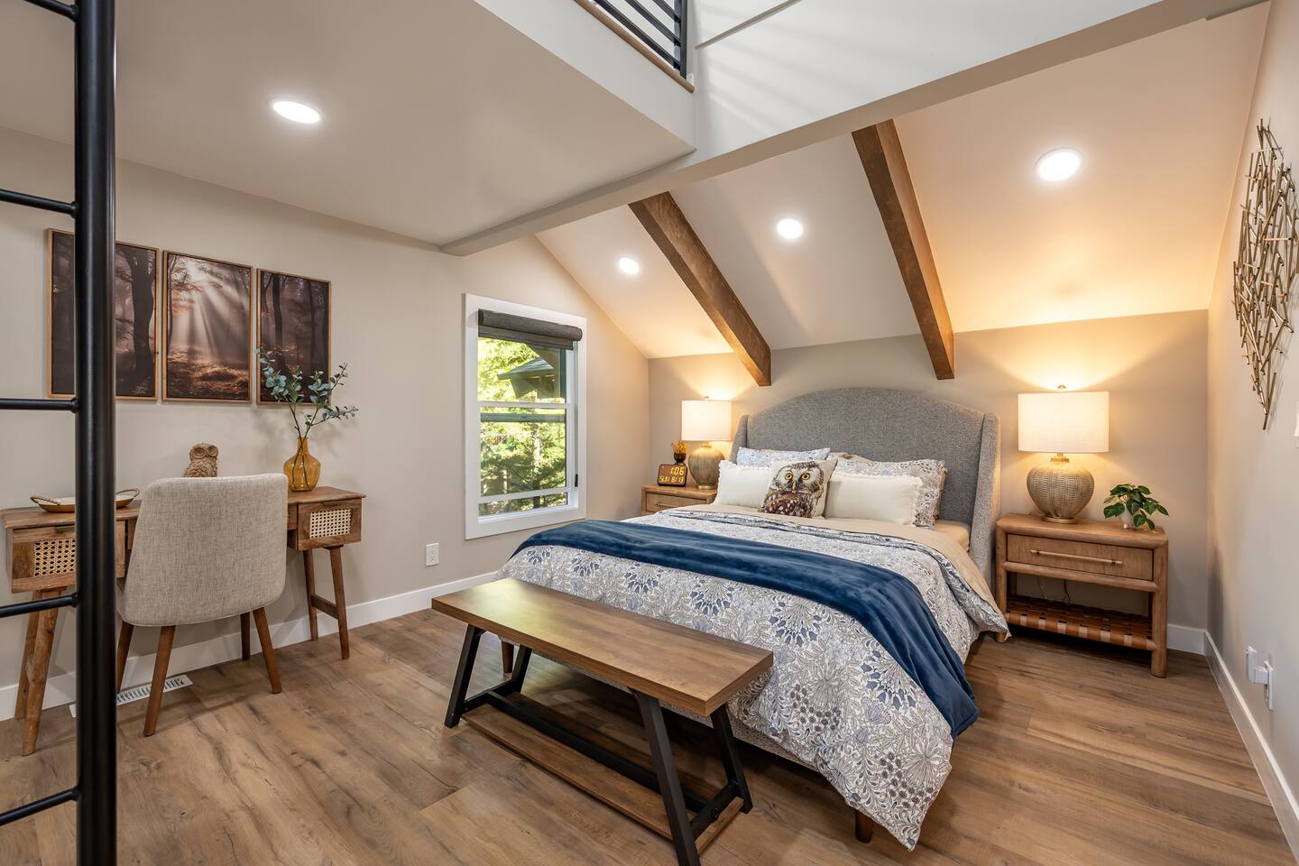 Welcome to your ultimate Big Bear getaway—just 1/4 mile from Snow Summit! This 5-bedroom, 5-bath super-cabin offers over 3,000 sq ft of rustic charm and modern comfort, perfect for large families or groups of up to 16. 📍 Nearby • Snow Summit Ski Resort: ~0.25mi • Big Bear Alpine Zoo: ~1mi • Alpine Slide at Magic Mountain: ~1mi • The Village at Big Bear Lake: ~2mi • Big Bear Discovery Center: ~3mi 🛌 Bedroom Layout: • Master Bedroom (2nd Floor): Queen bed with private bathroom ensuite • Bedroom #2 (2nd Floor): Queen bed with private bathroom ensuite • Bedroom #3 (2nd Floor): Two twin bunk beds with private bathroom ensuite • Bedroom #4 (1st Floor): Queen bed with private bathroom ensuite • Bedroom #5 (1st Floor): Queen bed with sliding door to back yard deck Step into the inviting great room with soaring vaulted ceilings, a cozy fireplace, and mountain-inspired design. The fully equipped kitchen opens to a spacious dining area, ideal for group meals or holiday feasts. Downstairs, the two-car garage has been transformed into a vibrant game room featuring a mural, foosball, board games, and more—perfect for both kids and adults to unwind after a day of adventure. Out back, relax under the stars in the private hot tub, relax around the firepit, or lounge on the large deck surrounded by pines. Four of the five bedrooms include private en-suite bathrooms for added privacy and comfort. Whether you’re hitting the slopes, hiking nearby trails, or just soaking in the alpine vibe, this centrally located home is your perfect year-round retreat in Big Bear. Come make memories that last a lifetime! AC UNIT ONLY IN GAME ROOM NOT COMPLETE HOME.