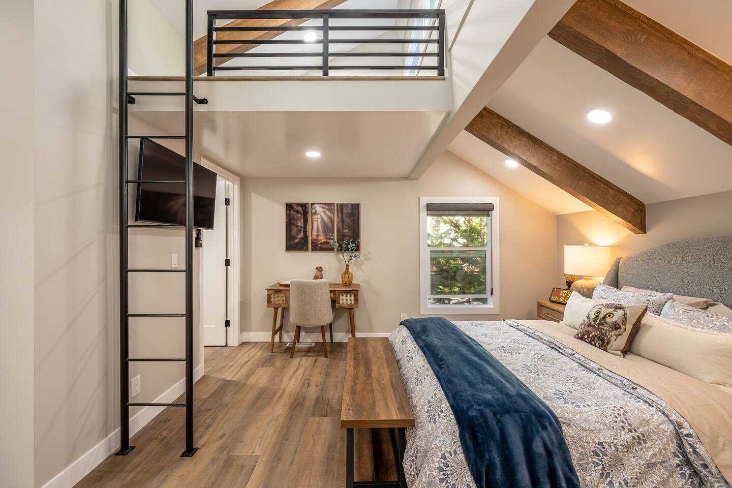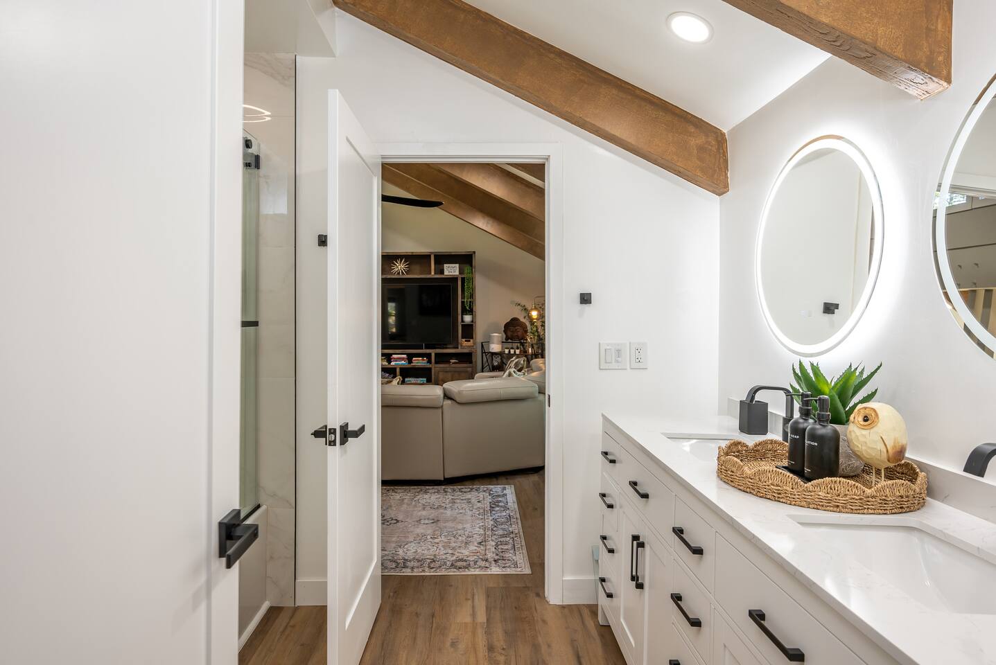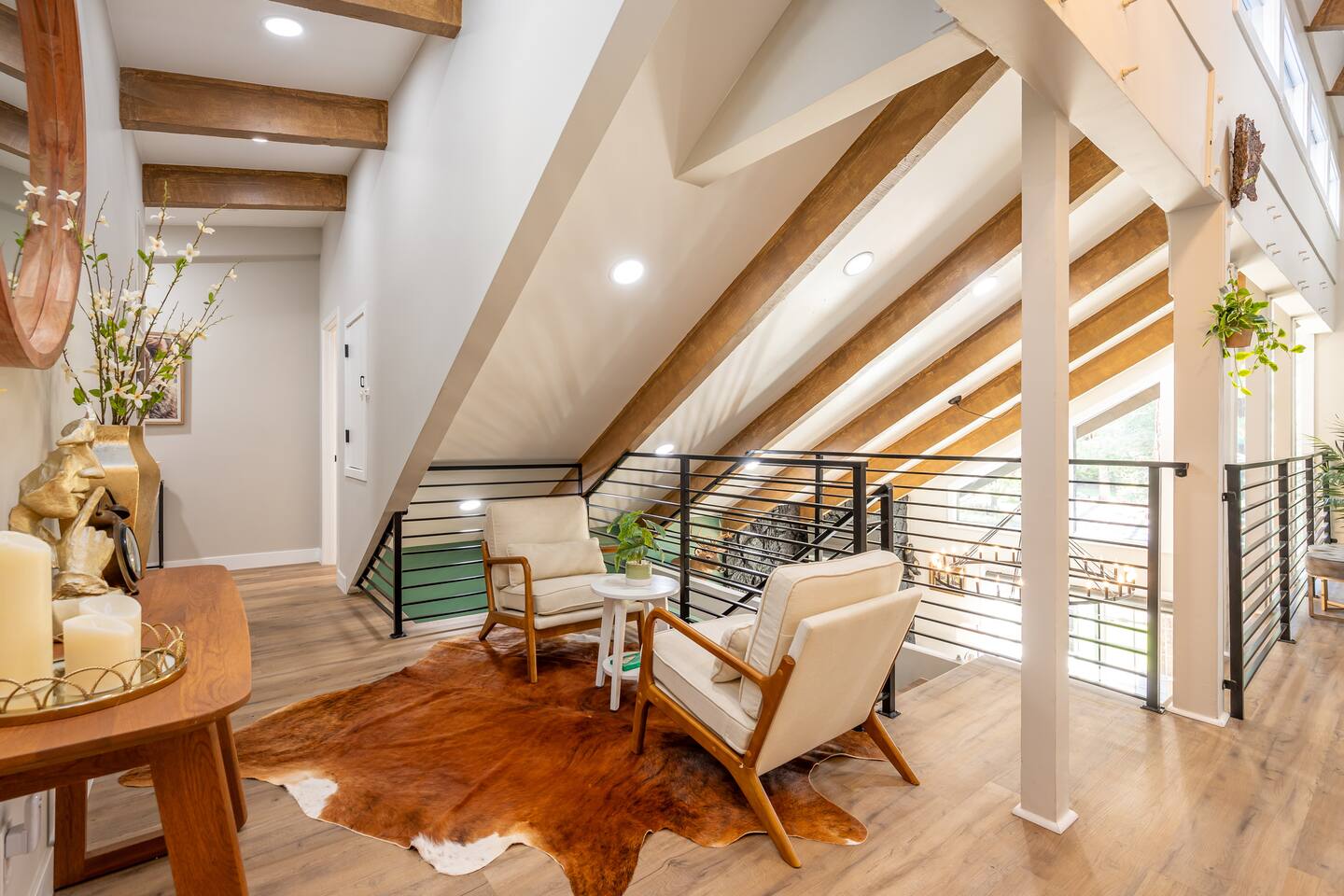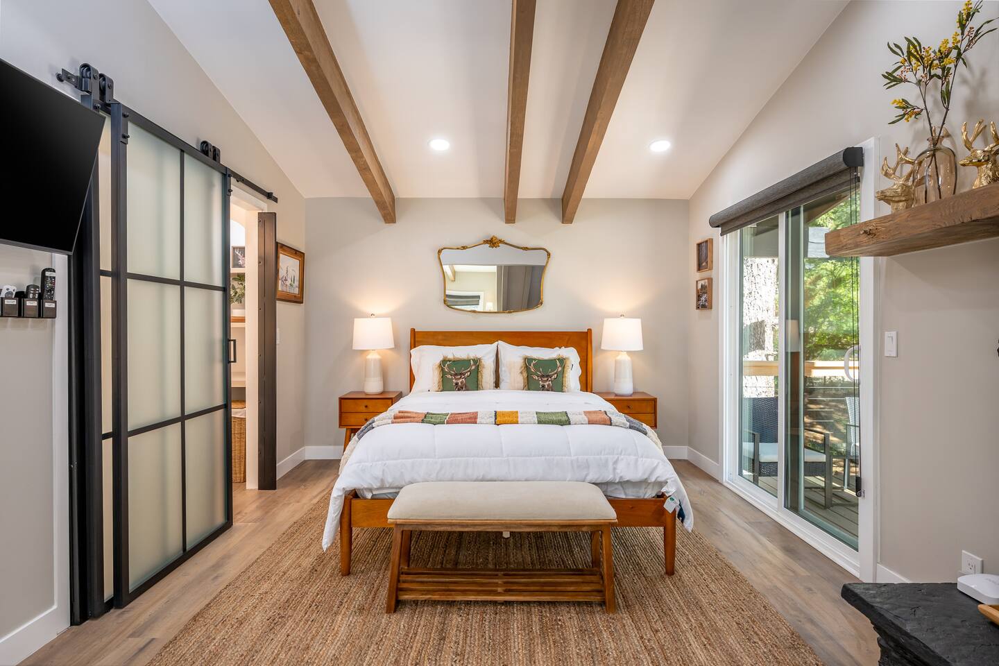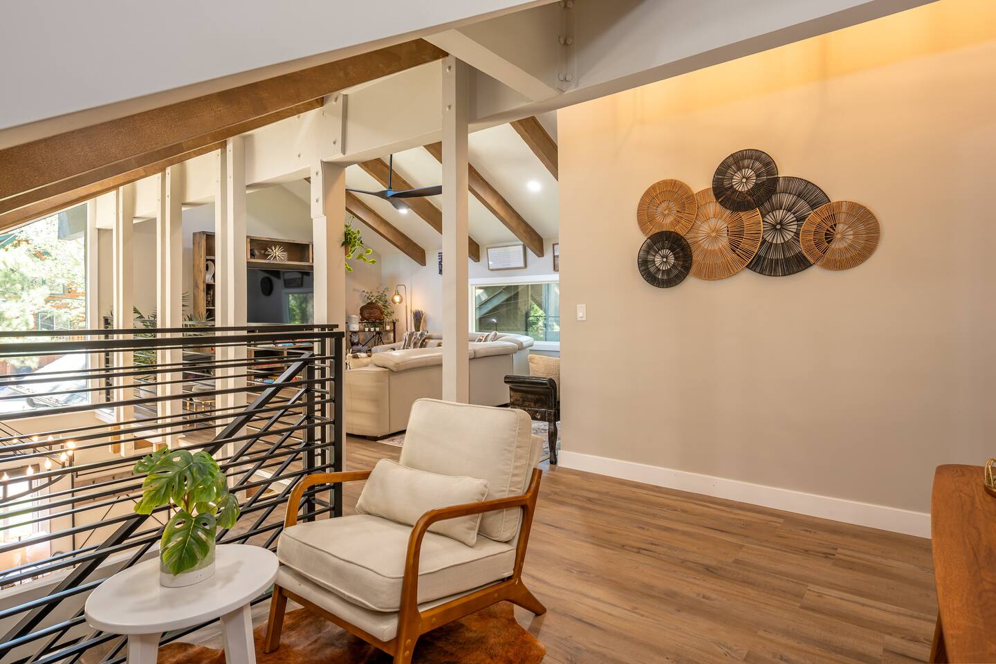 Welcome to your ultimate Big Bear getaway—just 1/4 mile from Snow Summit! This 5-bedroom, 5-bath super-cabin offers over 3,000 sq ft of rustic charm and modern comfort, perfect for large families or groups of up to 16. 📍 Nearby • Snow Summit Ski Resort: ~0.25mi • Big Bear Alpine Zoo: ~1mi • Alpine Slide at Magic Mountain: ~1mi • The Village at Big Bear Lake: ~2mi • Big Bear Discovery Center: ~3mi 🛌 Bedroom Layout: • Master Bedroom (2nd Floor): Queen bed with private bathroom ensuite • Bedroom #2 (2nd Floor): Queen bed with private bathroom ensuite • Bedroom #3 (2nd Floor): Two twin bunk beds with private bathroom ensuite • Bedroom #4 (1st Floor): Queen bed with private bathroom ensuite • Bedroom #5 (1st Floor): Queen bed with sliding door to back yard deck Step into the inviting great room with soaring vaulted ceilings, a cozy fireplace, and mountain-inspired design. The fully equipped kitchen opens to a spacious dining area, ideal for group meals or holiday feasts. Downstairs, the two-car garage has been transformed into a vibrant game room featuring a mural, foosball, board games, and more—perfect for both kids and adults to unwind after a day of adventure. Out back, relax under the stars in the private hot tub, relax around the firepit, or lounge on the large deck surrounded by pines. Four of the five bedrooms include private en-suite bathrooms for added privacy and comfort. Whether you’re hitting the slopes, hiking nearby trails, or just soaking in the alpine vibe, this centrally located home is your perfect year-round retreat in Big Bear. Come make memories that last a lifetime! AC UNIT ONLY IN GAME ROOM NOT COMPLETE HOME.