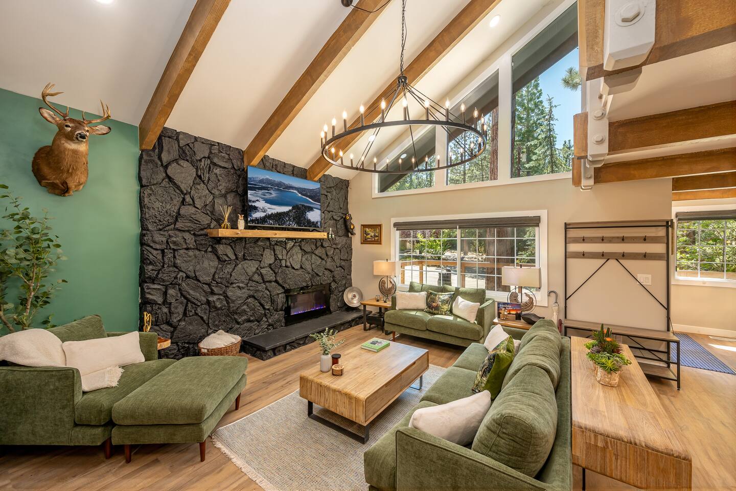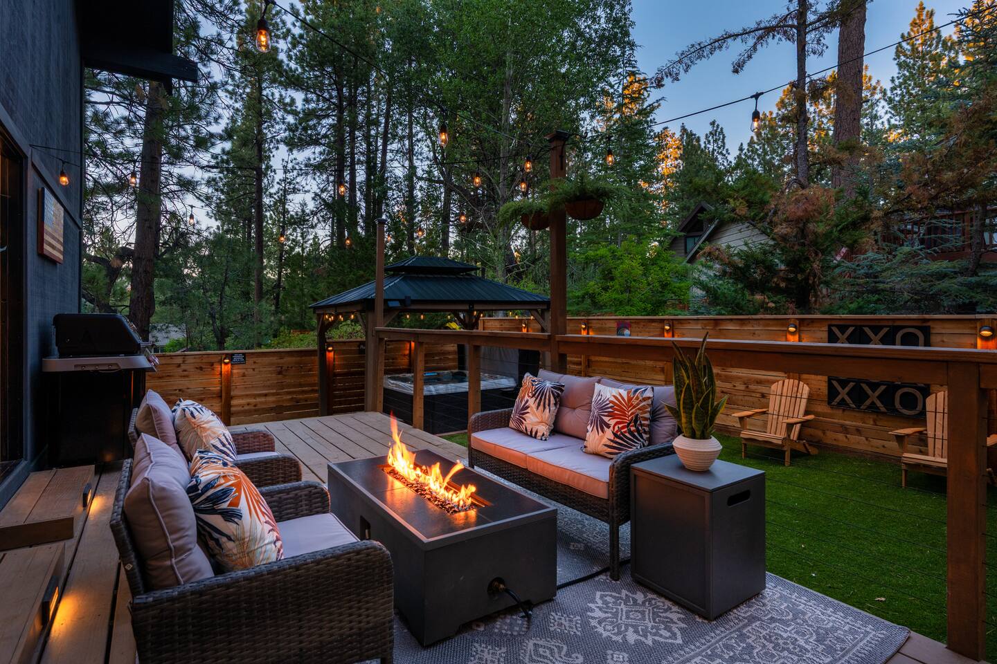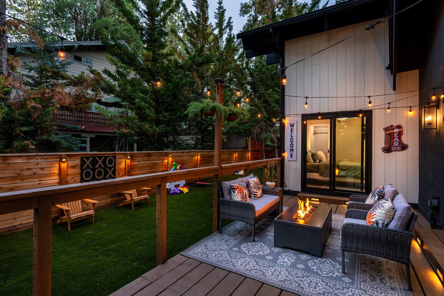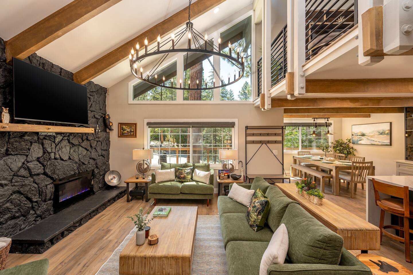 Garage is equipped with 50 AMP plug for EV charger, please bring your EV charger with you. AC UNIT ONLY IN GAME ROOM NOT COMPLETE HOME. Big Bear has some very important rules for all short term rentals. You must follow these rules or your stay will be canceled without refund and or a $350.00 fine will be charged for each occurrence: 1.) Do not exceed the stated occupancy limit: the max occupancy is (14) adults 2.) No parking on the street or yard and a maximum of (6) cars 3. Maximum dogs allowed (2) 4.) No amplified music 24/7 5.) Noisy outdoor activities and spa use are prohibited from 10:00pm-7:00am. 6. If you do not disclose that you are bringing a pet, you will be charged a $250 fee *No Parties! If you have more than the number of guests in your booking your stay will be cancelled immediately. The city takes this very seriously. * PLEASE NO SMOKING * MAXIMUM OF 14 PEOPLE Violation of any of the following will be subject to a $350 fine and any additional fines levied by the city, whether it results in a violation or not. **Please note: Big Bear is in the mountains. We do not frequently have issues, but sometimes there are power and/or wifi outages that affect the whole mountain. We do our absolute best to accommodate our wonderful guests but anything can happen. We appreciate your understanding. ***Friendly Wildlife Reminder for Big Bear Visitors Big Bear is home to amazing wildlife, including bears, coyotes, and other animals. While sightings are exciting, please remember to keep a safe distance, never feed wild animals, and store food securely. Enjoy nature—respectfully and safely!