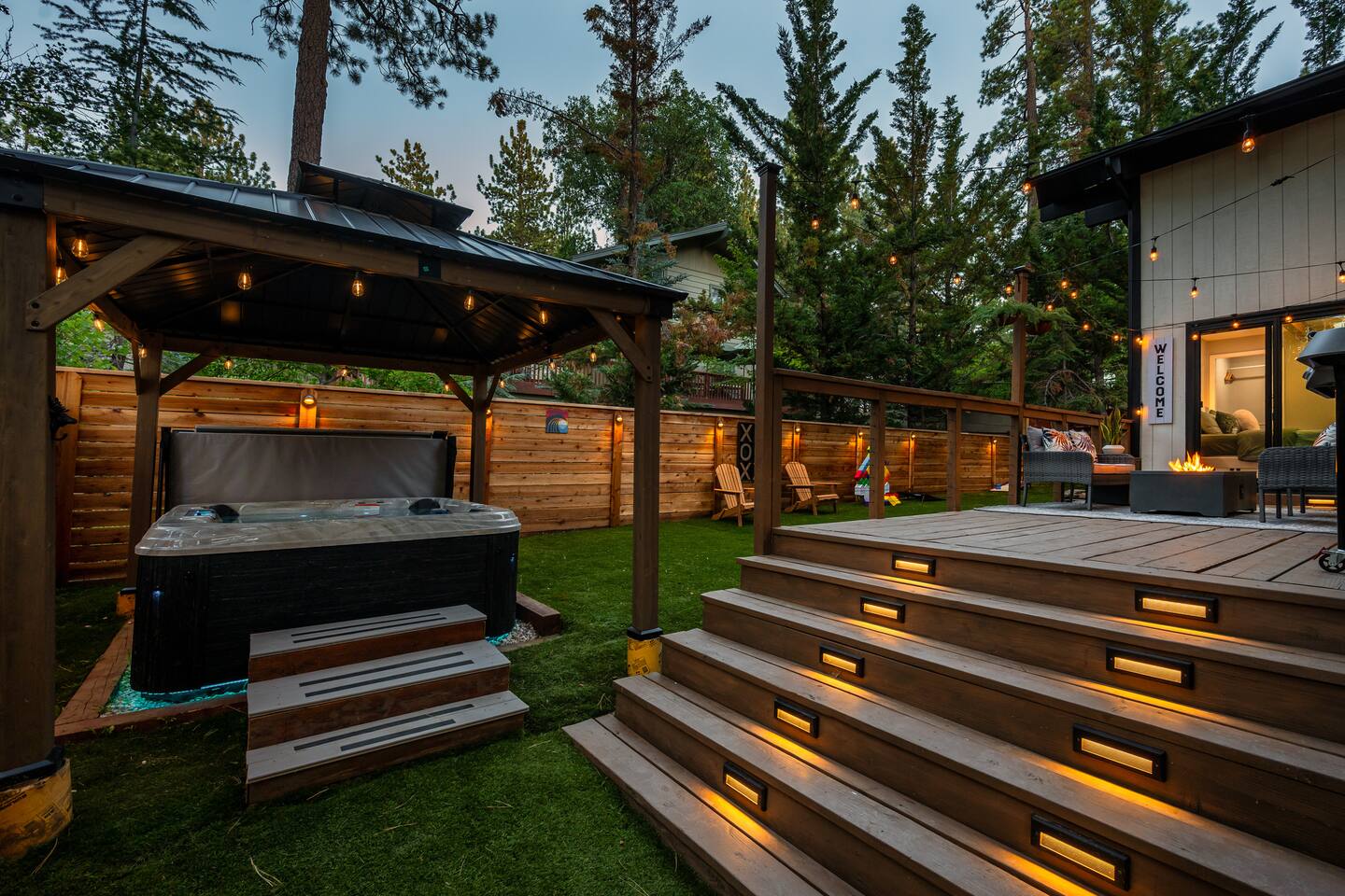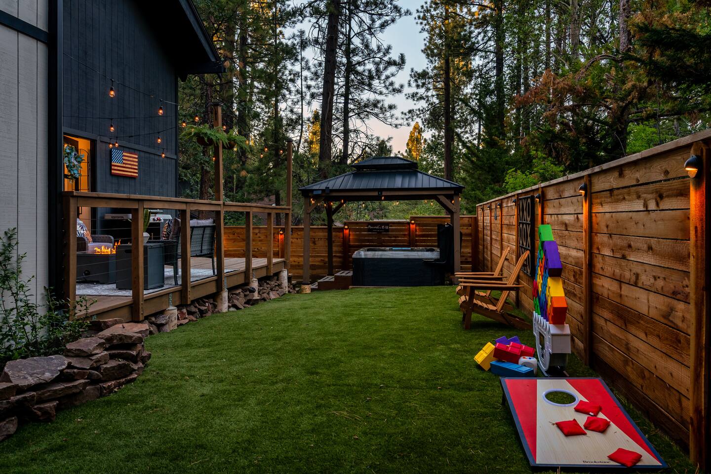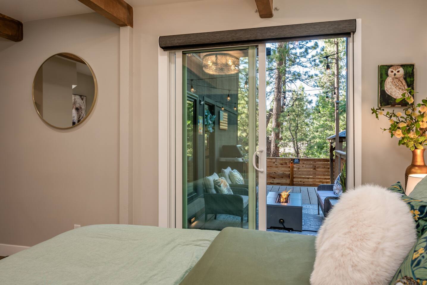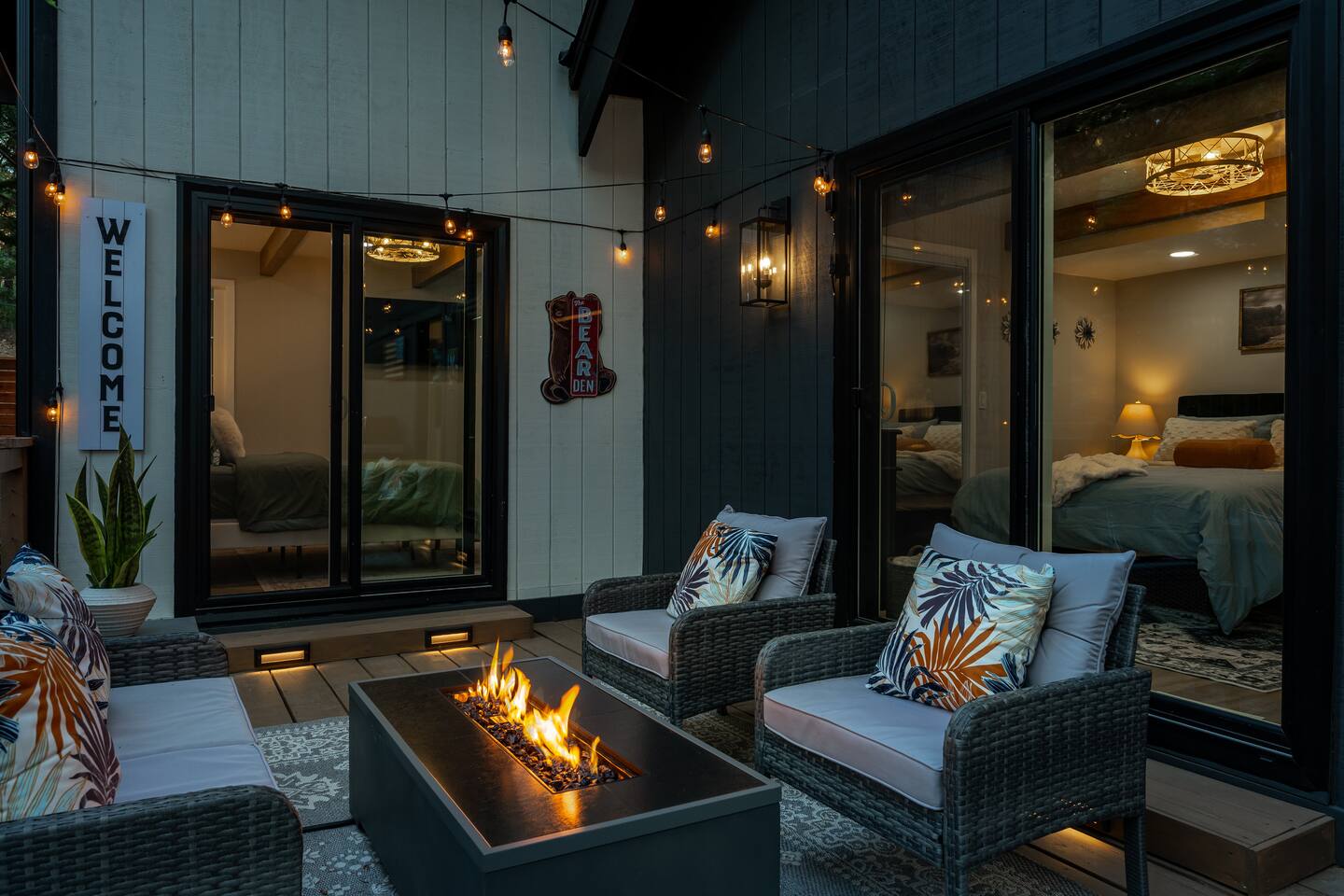 Garage is equipped with 50 AMP plug for EV charger, please bring your EV charger with you. AC UNIT ONLY IN GAME ROOM NOT COMPLETE HOME. Big Bear has some very important rules for all short term rentals. You must follow these rules or your stay will be canceled without refund and or a $350.00 fine will be charged for each occurrence: 1.) Do not exceed the stated occupancy limit: the max occupancy is (14) adults 2.) No parking on the street or yard and a maximum of (6) cars 3. Maximum dogs allowed (2) 4.) No amplified music 24/7 5.) Noisy outdoor activities and spa use are prohibited from 10:00pm-7:00am. 6. If you do not disclose that you are bringing a pet, you will be charged a $250 fee *No Parties! If you have more than the number of guests in your booking your stay will be cancelled immediately. The city takes this very seriously. * PLEASE NO SMOKING * MAXIMUM OF 14 PEOPLE Violation of any of the following will be subject to a $350 fine and any additional fines levied by the city, whether it results in a violation or not. **Please note: Big Bear is in the mountains. We do not frequently have issues, but sometimes there are power and/or wifi outages that affect the whole mountain. We do our absolute best to accommodate our wonderful guests but anything can happen. We appreciate your understanding. ***Friendly Wildlife Reminder for Big Bear Visitors Big Bear is home to amazing wildlife, including bears, coyotes, and other animals. While sightings are exciting, please remember to keep a safe distance, never feed wild animals, and store food securely. Enjoy nature—respectfully and safely!