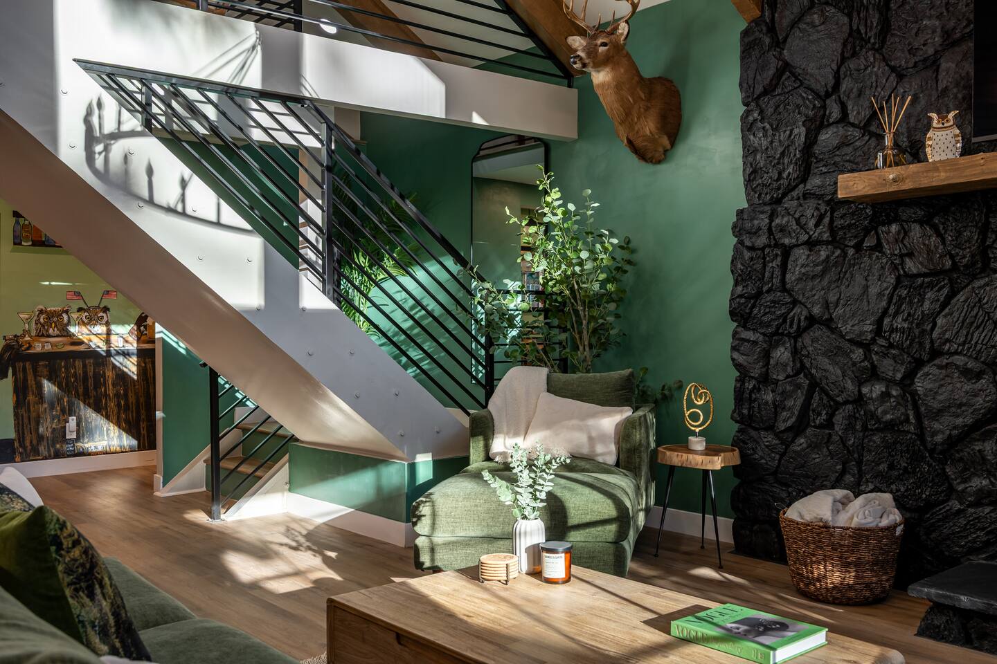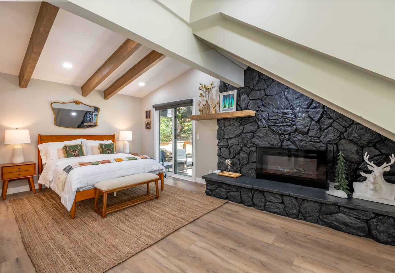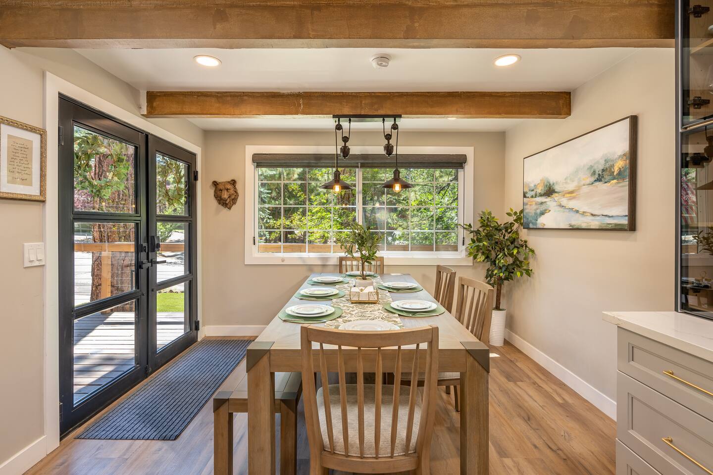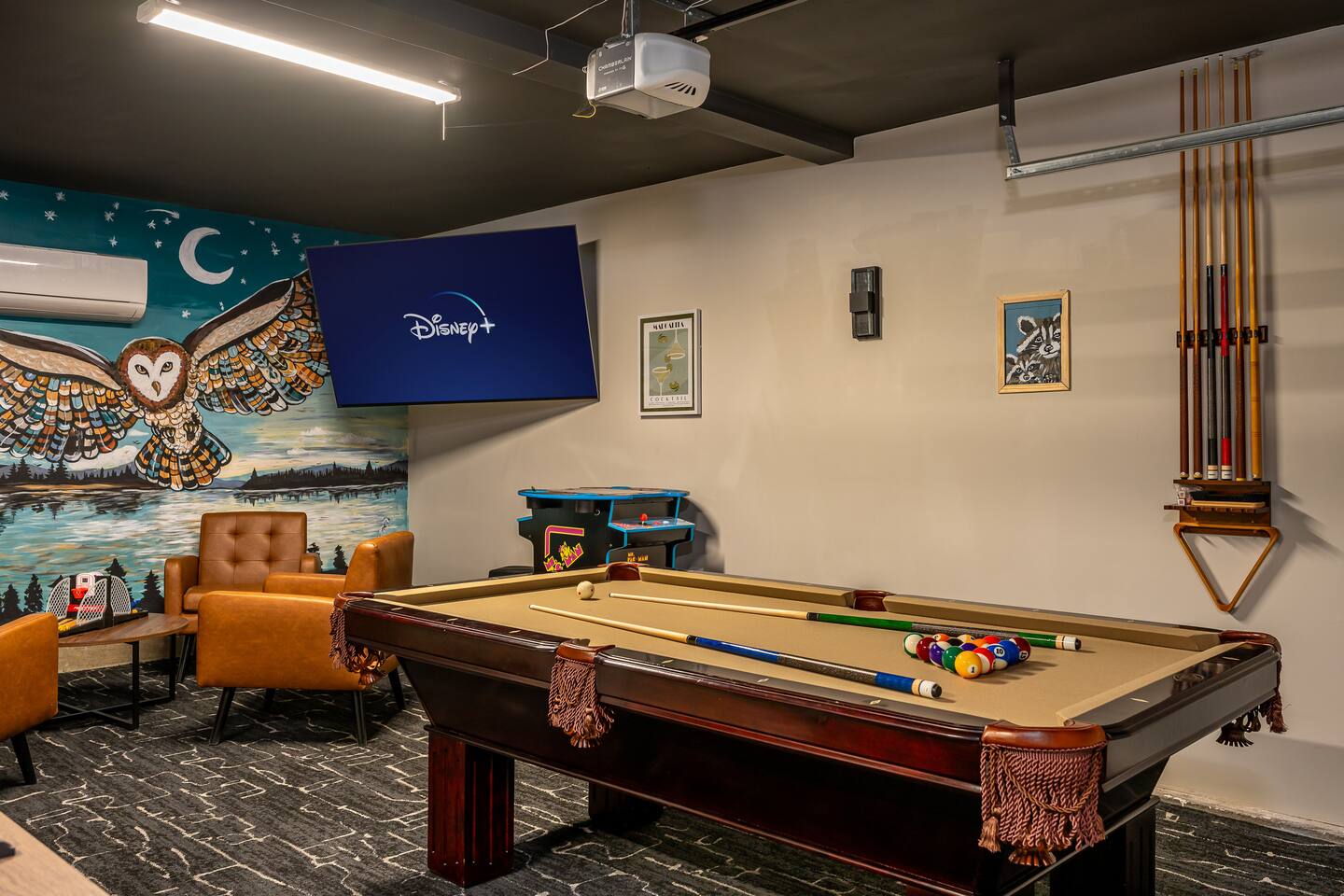 Garage is equipped with 50 AMP plug for EV charger, please bring your EV charger with you. AC UNIT ONLY IN GAME ROOM NOT COMPLETE HOME. Big Bear has some very important rules for all short term rentals. You must follow these rules or your stay will be canceled without refund and or a $350.00 fine will be charged for each occurrence: 1.) Do not exceed the stated occupancy limit: the max occupancy is (14) adults 2.) No parking on the street or yard and a maximum of (6) cars 3. Maximum dogs allowed (2) 4.) No amplified music 24/7 5.) Noisy outdoor activities and spa use are prohibited from 10:00pm-7:00am. 6. If you do not disclose that you are bringing a pet, you will be charged a $250 fee *No Parties! If you have more than the number of guests in your booking your stay will be cancelled immediately. The city takes this very seriously. * PLEASE NO SMOKING * MAXIMUM OF 14 PEOPLE Violation of any of the following will be subject to a $350 fine and any additional fines levied by the city, whether it results in a violation or not. **Please note: Big Bear is in the mountains. We do not frequently have issues, but sometimes there are power and/or wifi outages that affect the whole mountain. We do our absolute best to accommodate our wonderful guests but anything can happen. We appreciate your understanding. ***Friendly Wildlife Reminder for Big Bear Visitors Big Bear is home to amazing wildlife, including bears, coyotes, and other animals. While sightings are exciting, please remember to keep a safe distance, never feed wild animals, and store food securely. Enjoy nature—respectfully and safely!