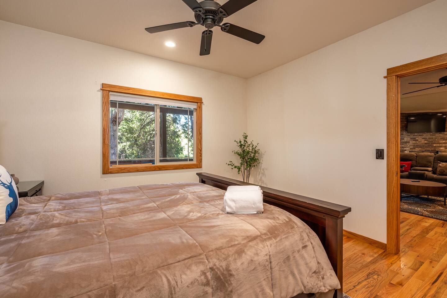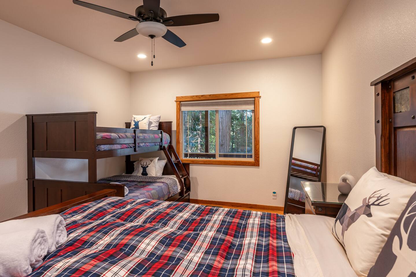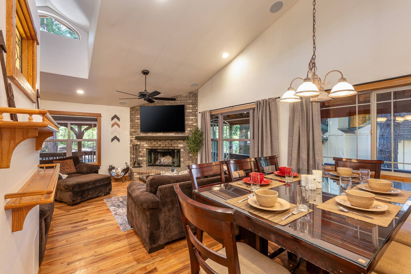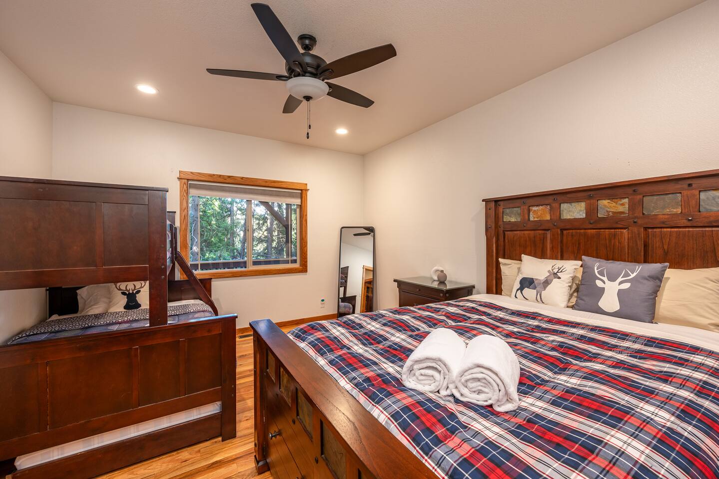 Step inside to discover vaulted wood ceilings, cozy textures, and designer finishes throughout. Whether you’re sipping coffee on the deck, unwinding by the fireplace, or stargazing under the forest canopy, Oak & Arrow offers the perfect retreat for couples, families, or small groups. What you'll love: • Peaceful forest setting in a great neighborhood • Just a short drive to Lake Arrowhead Village & lake access • Cozy living room with fireplace & Smart TV • Fully stocked kitchen with modern appliances • Inviting bedrooms with plush bedding • Spacious deck for outdoor dining or lounging • High-speed Wi-Fi for remote work or streaming • Easy self-check-in & free parking 2 cars Bedroom Layout: • Master Bedroom (Main Floor): King bed, private en-suite bathroom, spacious closet, forest views, Jacuzzi bathtub with jets • Bedroom 2 (Lower Level): King bed, cozy and quiet, ideal for couples or solo travelers • Bedroom 3 (Lower Level): Queen bed plus a twin-over-full bunk — perfect for kids or a group • Shared Full Bathroom (Lower Level): Clean and well-stocked with towels and essentials Whether you're here to explore mountain trails, enjoy the lake, or simply relax in style, Oak & Arrow Lodge is the perfect place to call home. Book your stay today – your mountain escape awaits.