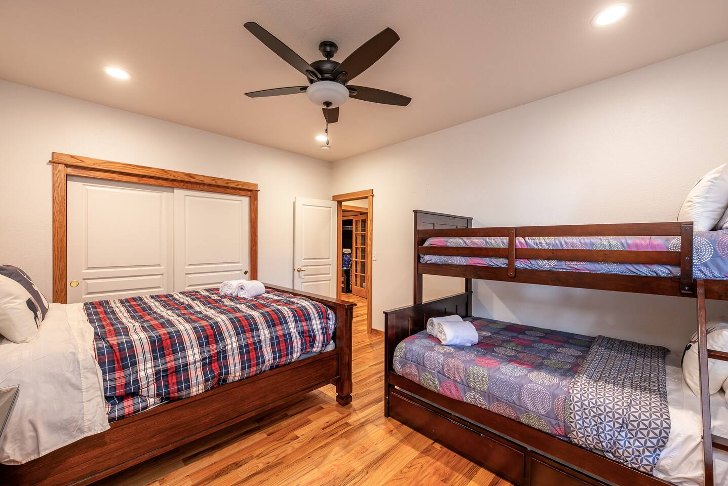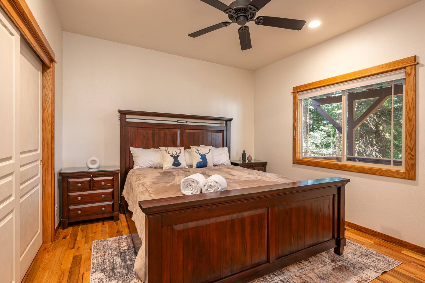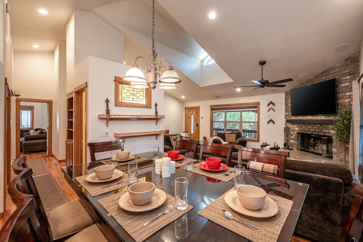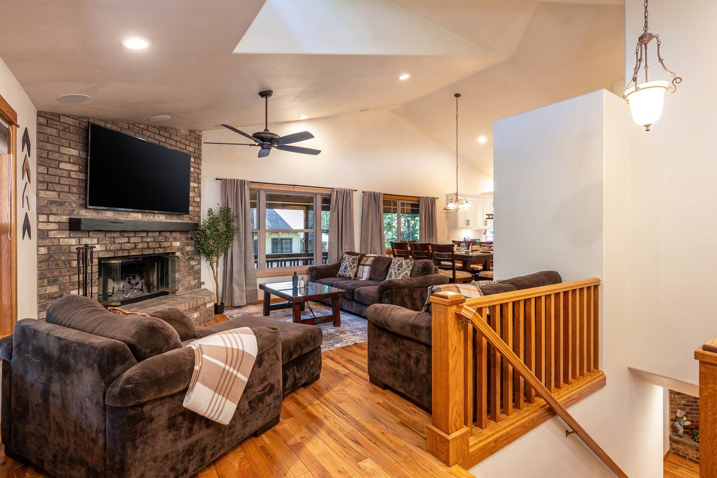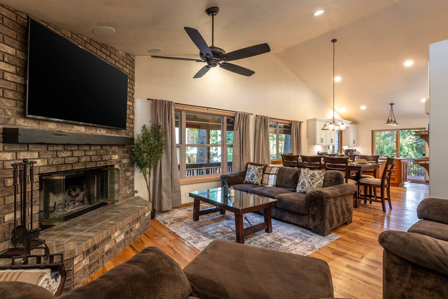 Step inside to discover vaulted wood ceilings, cozy textures, and designer finishes throughout. Whether you’re sipping coffee on the deck, unwinding by the fireplace, or stargazing under the forest canopy, Oak & Arrow offers the perfect retreat for couples, families, or small groups. What you'll love: • Peaceful forest setting in a great neighborhood • Just a short drive to Lake Arrowhead Village & lake access • Cozy living room with fireplace & Smart TV • Fully stocked kitchen with modern appliances • Inviting bedrooms with plush bedding • Spacious deck for outdoor dining or lounging • High-speed Wi-Fi for remote work or streaming • Easy self-check-in & free parking 2 cars Bedroom Layout: • Master Bedroom (Main Floor): King bed, private en-suite bathroom, spacious closet, forest views, Jacuzzi bathtub with jets • Bedroom 2 (Lower Level): King bed, cozy and quiet, ideal for couples or solo travelers • Bedroom 3 (Lower Level): Queen bed plus a twin-over-full bunk — perfect for kids or a group • Shared Full Bathroom (Lower Level): Clean and well-stocked with towels and essentials Whether you're here to explore mountain trails, enjoy the lake, or simply relax in style, Oak & Arrow Lodge is the perfect place to call home. Book your stay today – your mountain escape awaits.