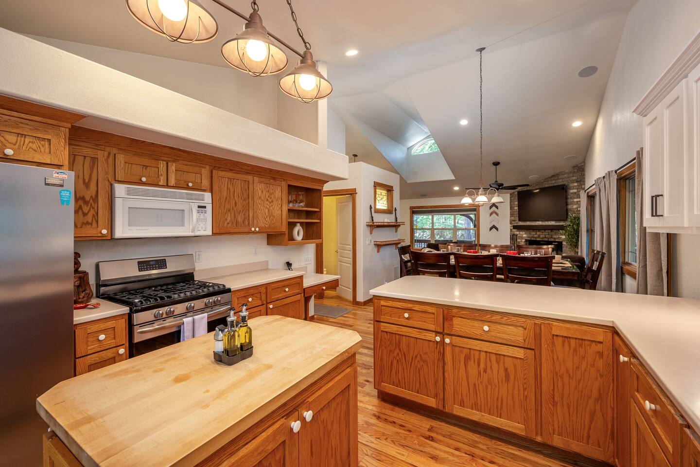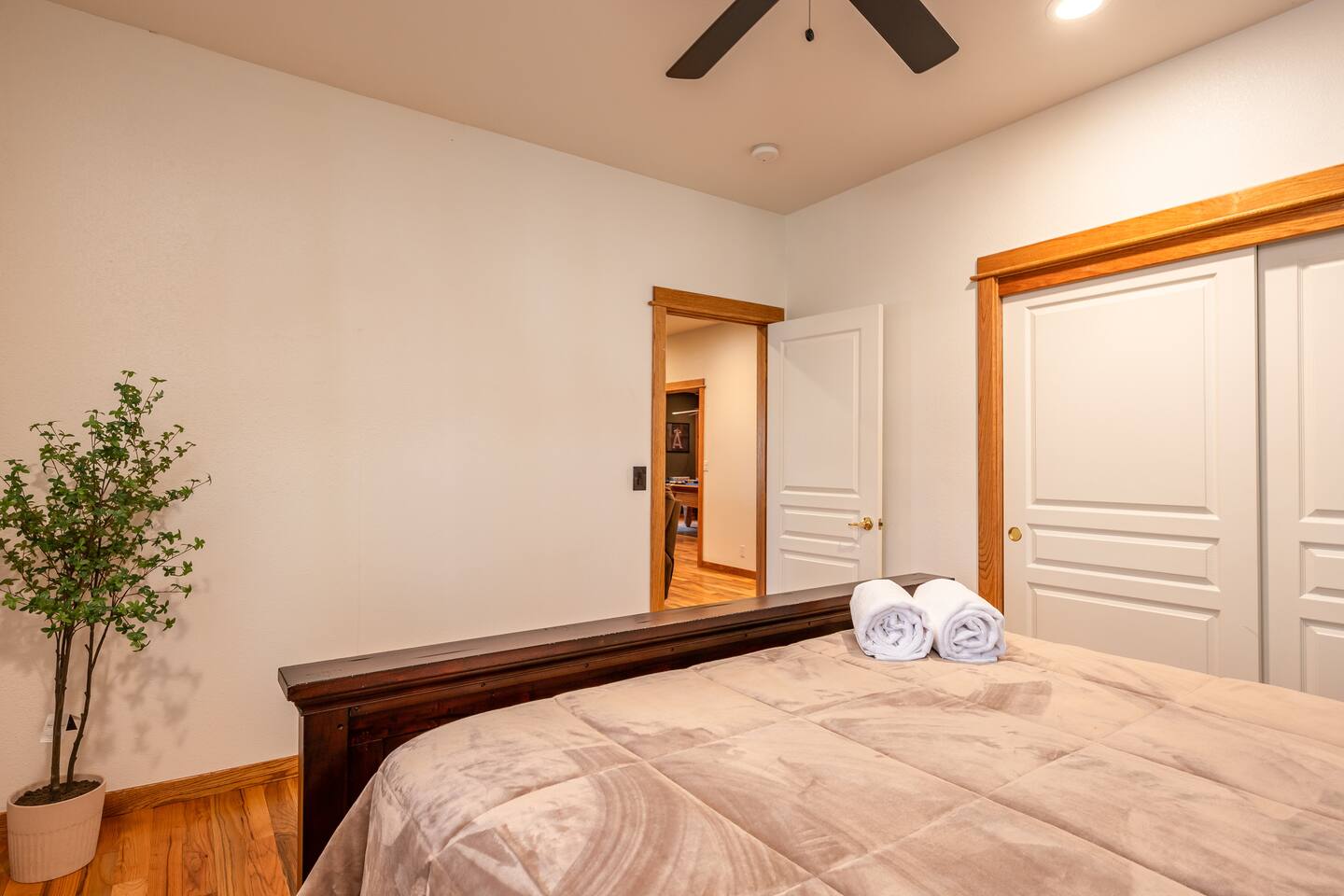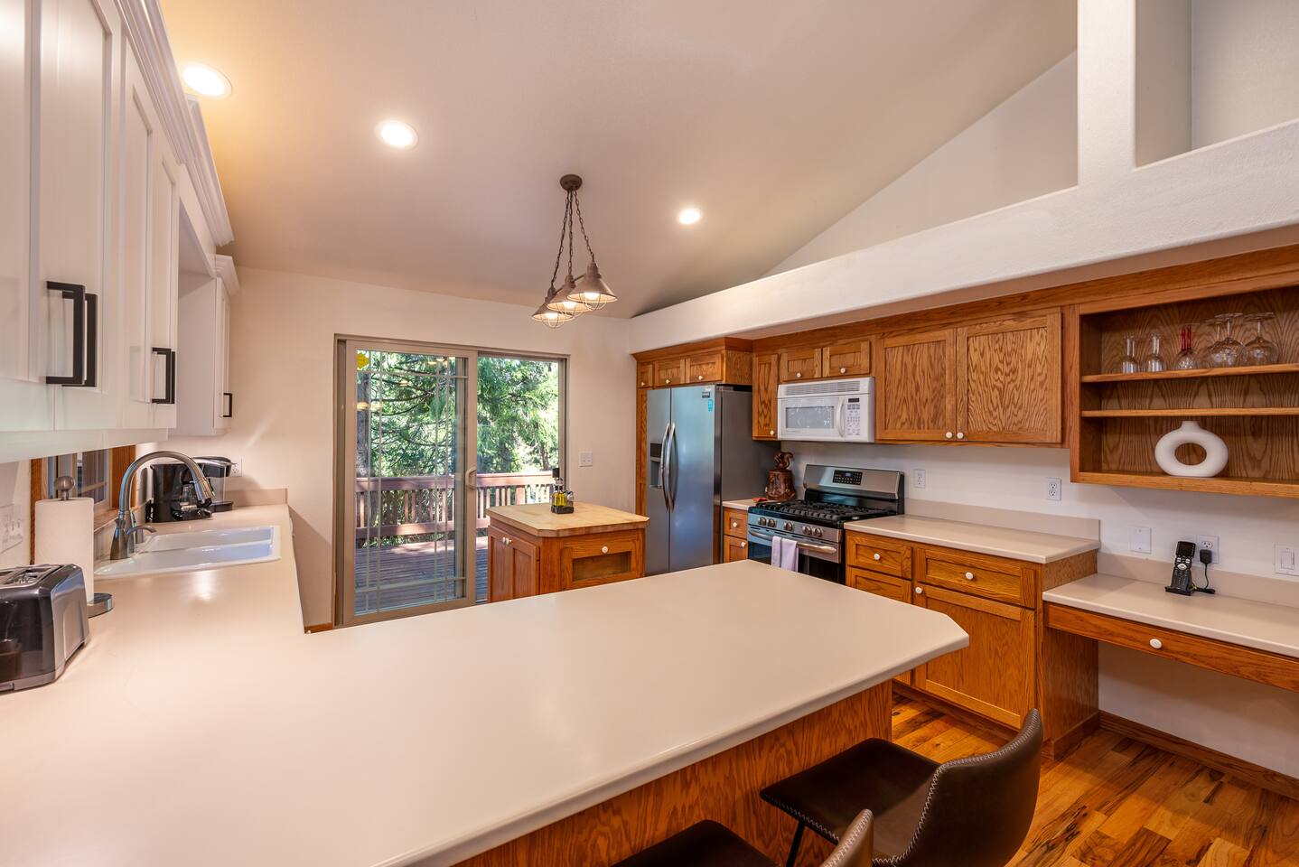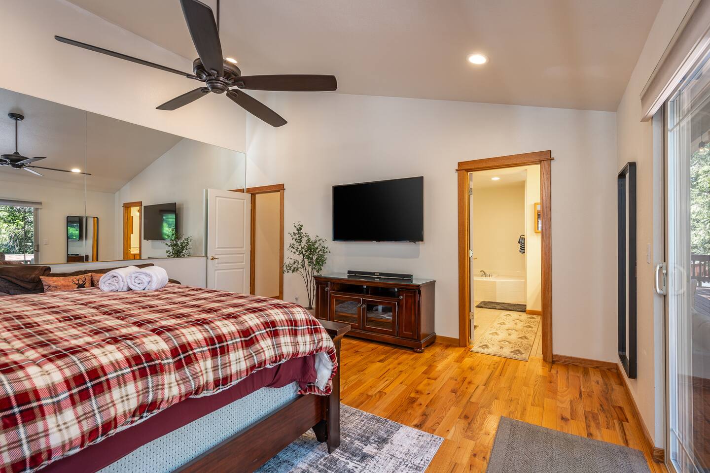 Step inside to discover vaulted wood ceilings, cozy textures, and designer finishes throughout. Whether you’re sipping coffee on the deck, unwinding by the fireplace, or stargazing under the forest canopy, Oak & Arrow offers the perfect retreat for couples, families, or small groups. What you'll love: • Peaceful forest setting in a great neighborhood • Just a short drive to Lake Arrowhead Village & lake access • Cozy living room with fireplace & Smart TV • Fully stocked kitchen with modern appliances • Inviting bedrooms with plush bedding • Spacious deck for outdoor dining or lounging • High-speed Wi-Fi for remote work or streaming • Easy self-check-in & free parking 2 cars Bedroom Layout: • Master Bedroom (Main Floor): King bed, private en-suite bathroom, spacious closet, forest views, Jacuzzi bathtub with jets • Bedroom 2 (Lower Level): King bed, cozy and quiet, ideal for couples or solo travelers • Bedroom 3 (Lower Level): Queen bed plus a twin-over-full bunk — perfect for kids or a group • Shared Full Bathroom (Lower Level): Clean and well-stocked with towels and essentials Whether you're here to explore mountain trails, enjoy the lake, or simply relax in style, Oak & Arrow Lodge is the perfect place to call home. Book your stay today – your mountain escape awaits.